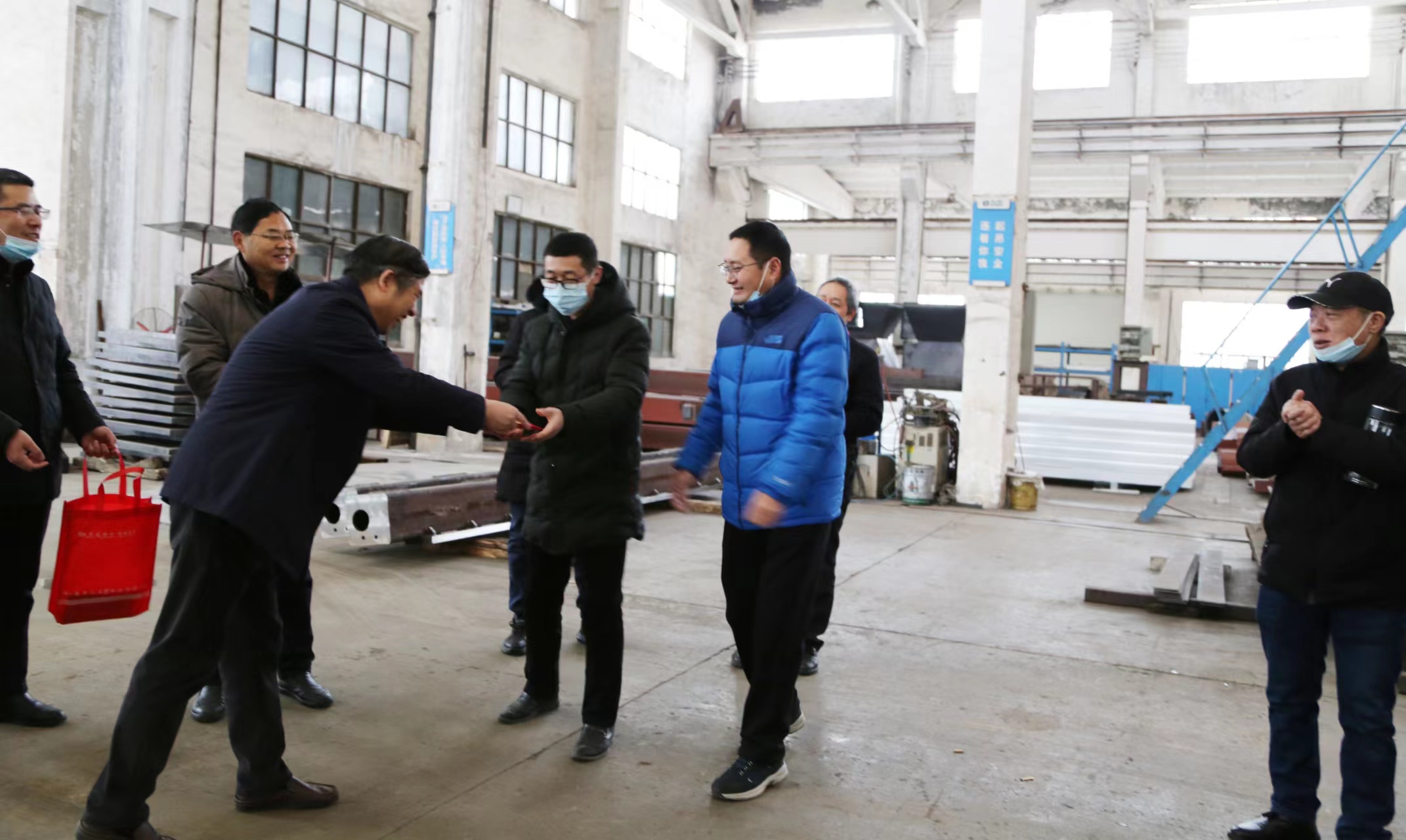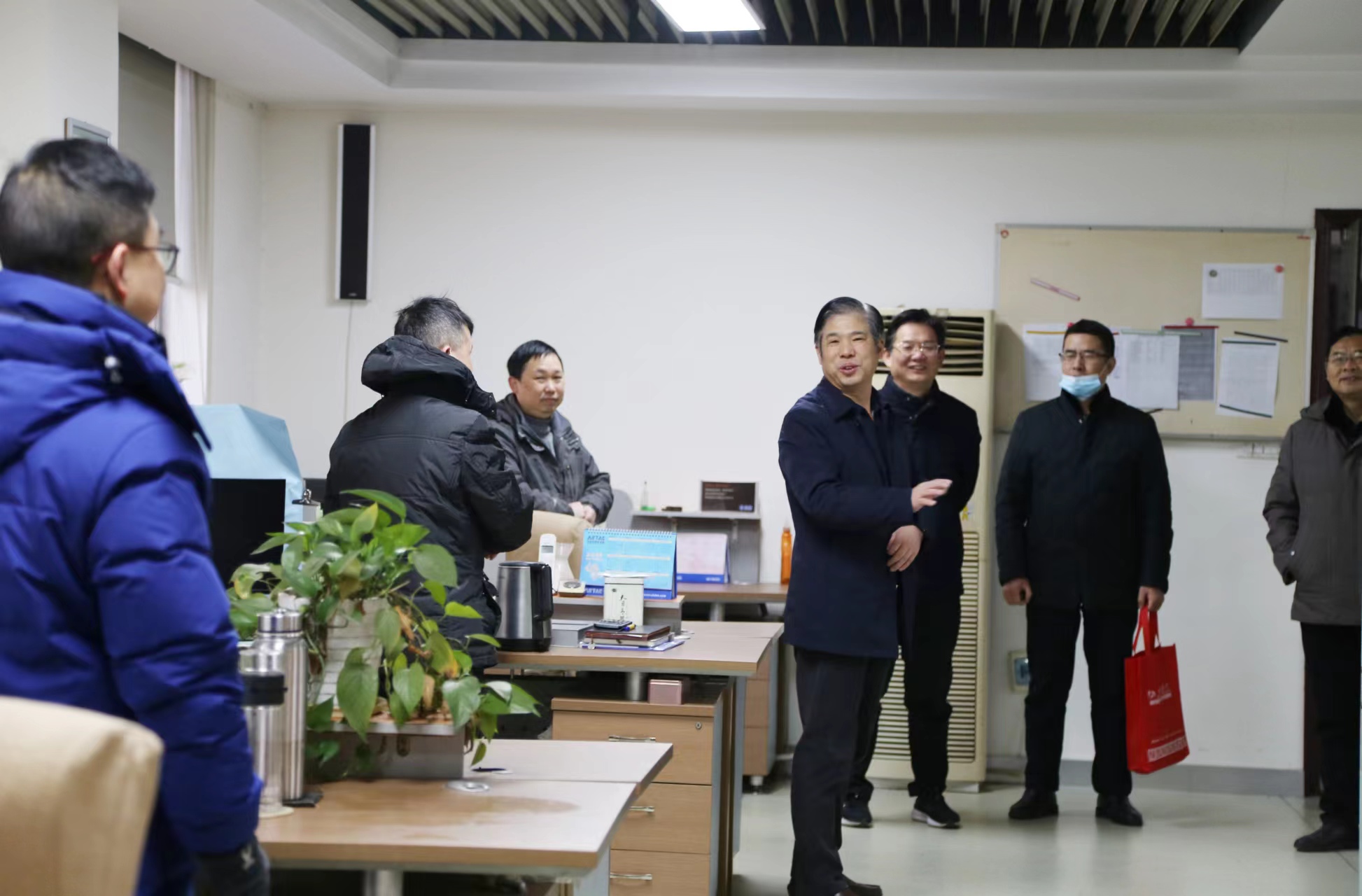 早晨8:18分始,总经理彭宜纯率公司经营层领导分赴技术品质部、制造部、加工车间、综合车间、总装车间、市场部、综合管理部,面对面向员工送去了新年祝福,并为每位员工分发了预示新年红红火火的大红包。